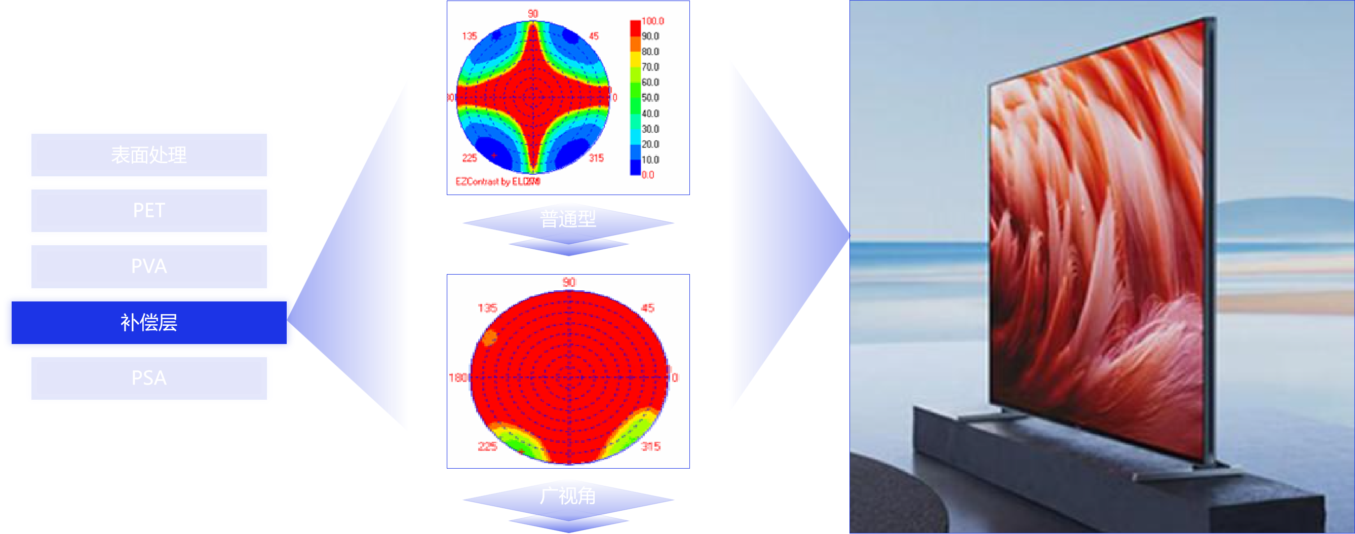 LCD偏光片一直以來就是杉金光電的強項。本屆DIC EXPO,杉金光電帶來了SLR超低反射TV偏光片、ATW-廣視角技術偏光片、VA超高透過偏光片、RF偏光片、QWP圓偏光型偏光片等多項優勢產品,全方位展示了杉金光電在高端LCD偏光片上的強勁優勢。在大尺寸偏光片方面,杉金光電填補了我國在大型偏光片生產制造項目的空白,并成功突破了大尺寸偏光片在高溫高濕環境中收縮漏光、強光環境反光等問題,為TV等產品帶來了更廣的視角和更亮、更清晰的畫質。