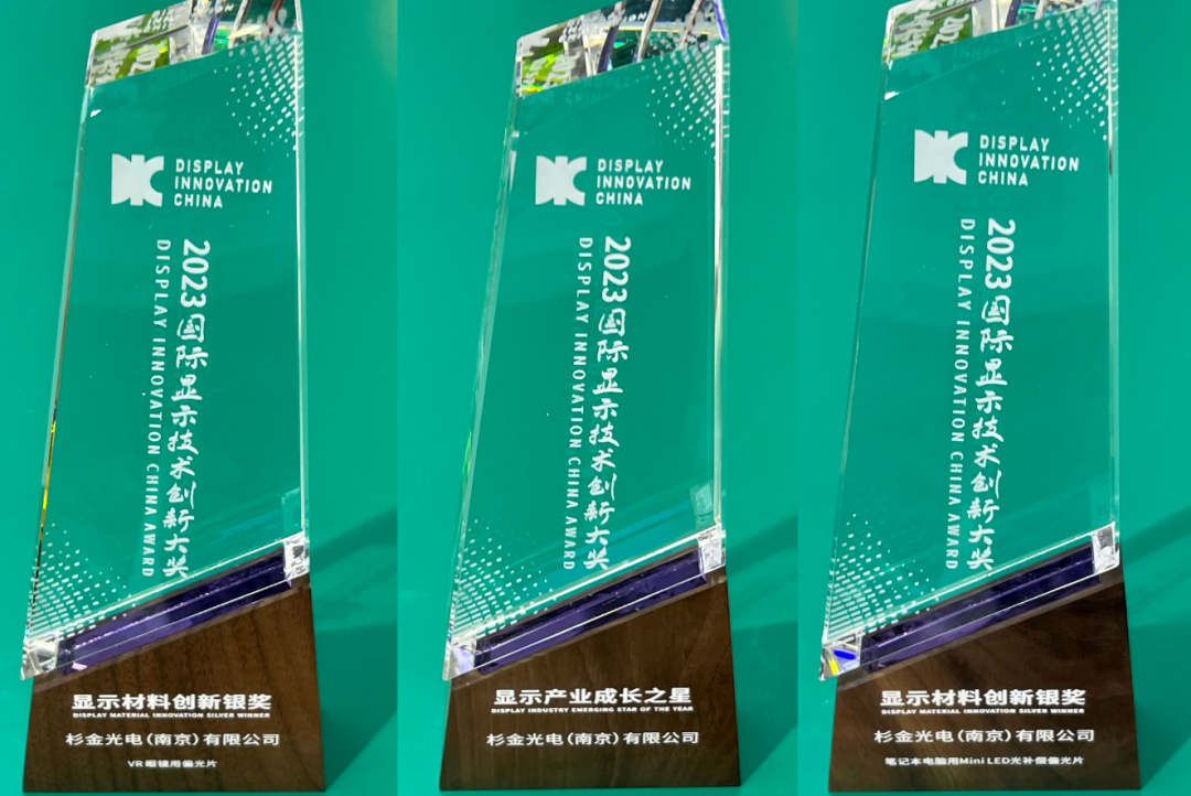 中小型高端偏光片也是杉金光電正集中資源重點強化開發的領域,在本屆DIC EXPO上,杉金光電展出了分別應用于VR眼鏡、手機、平板電腦上的偏光片產品。這些產品高度適應了中小型顯示市場高透過、薄型化的發展方向。杉金光電中小型偏光片也在本次展會斬獲頗豐,VR眼鏡用偏光片及筆記本電腦用Mini LED光補償偏光片均榮獲顯示材料創新銀獎。